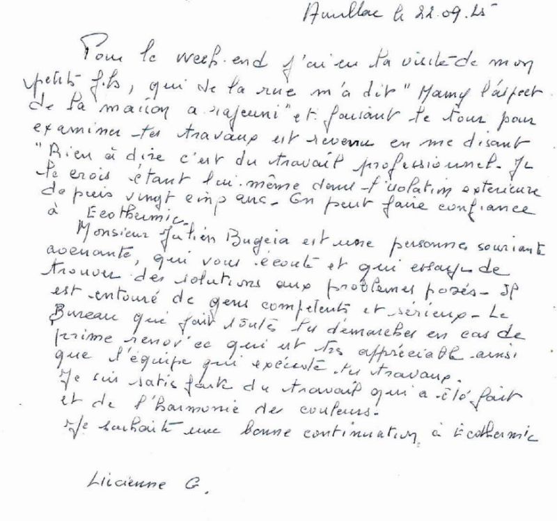 Merci Mme G à Aurillac (15000) d’avoir fait appel une seconde fois à Ecothermic pour ses travaux d'isolation par l'extérieur.