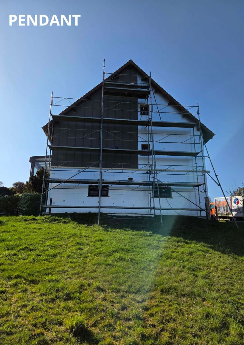 Un pignon particulièrement exposé au vent a été entièrement protégé et isolé pour garantir confort et durabilité.